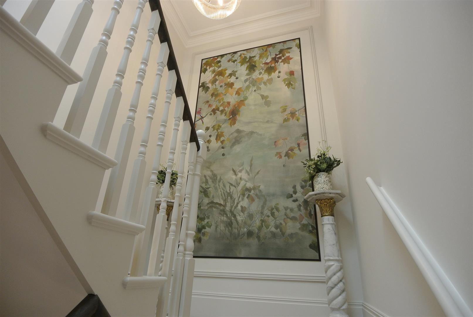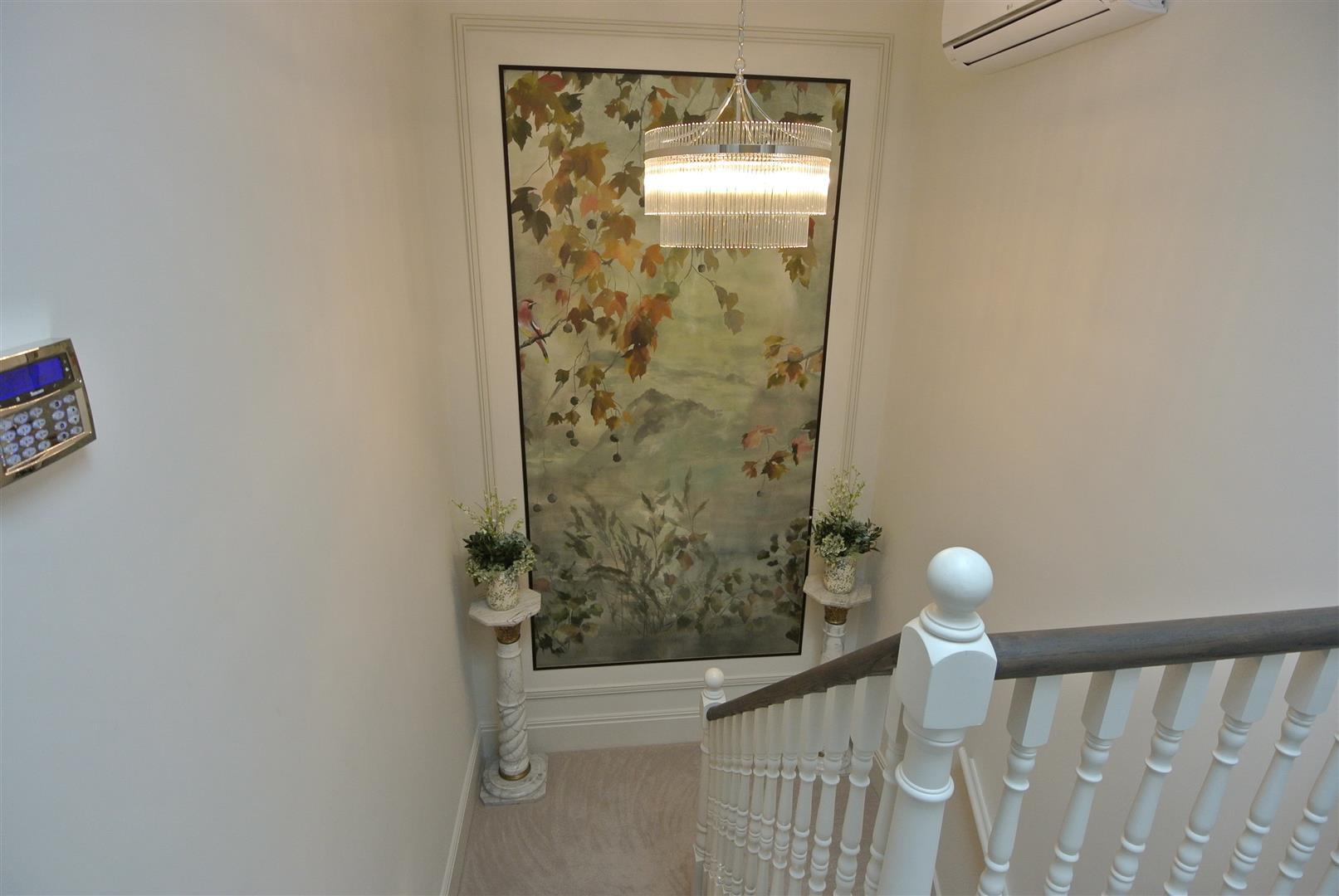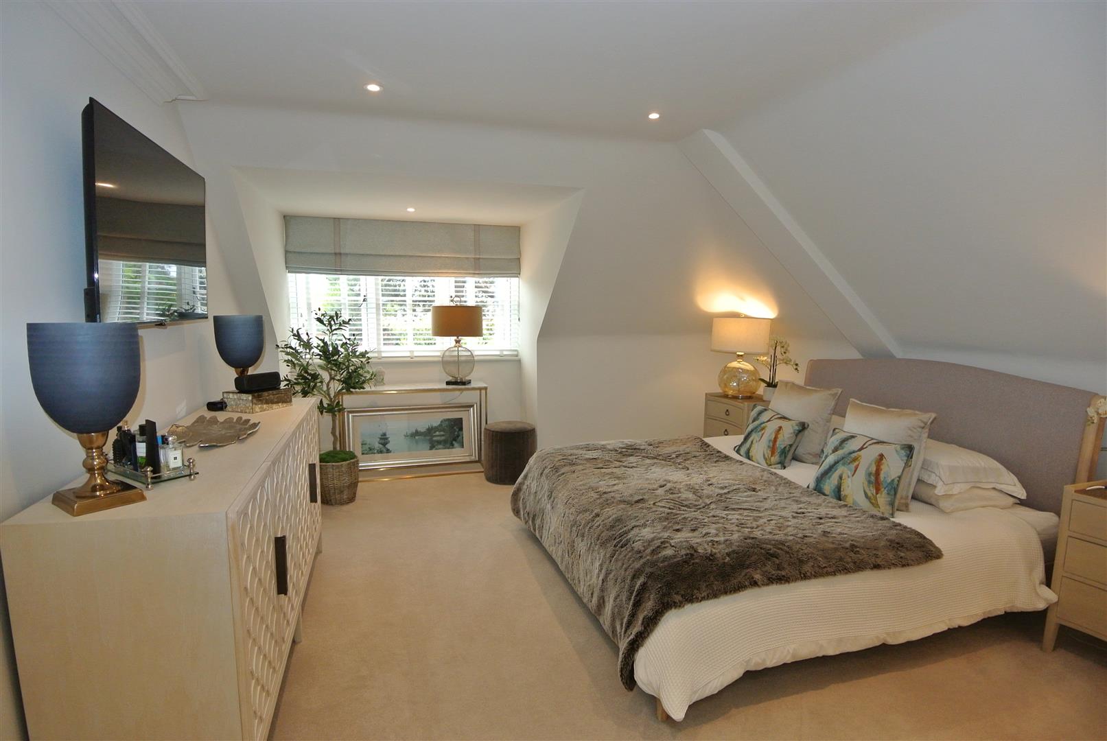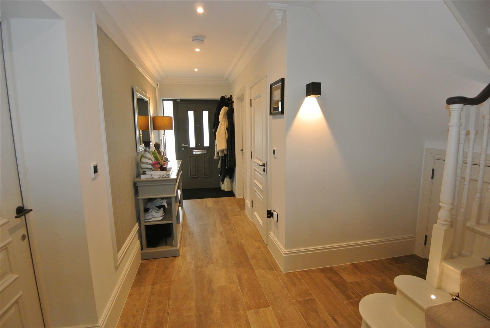 The principal bedroom has an en suite bath/shower room and dressing room, along with air conditioning, with a second unit on the landing helping to cool the core of the house. The second bedroom has a large en suite shower room and the family bathroom has an additional shower, all with quality fitments. Landing and hallway areas are spacious with bespoke feature panelling and there is of course a large downstairs cloakroom and a utility room. Block-paving provides parking for 3-4 cars.