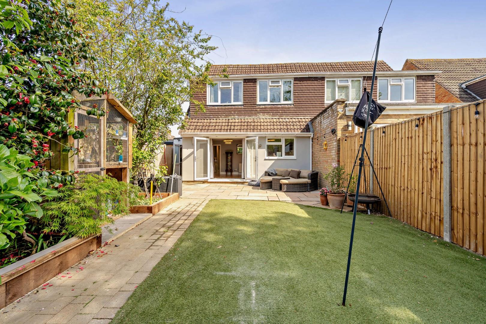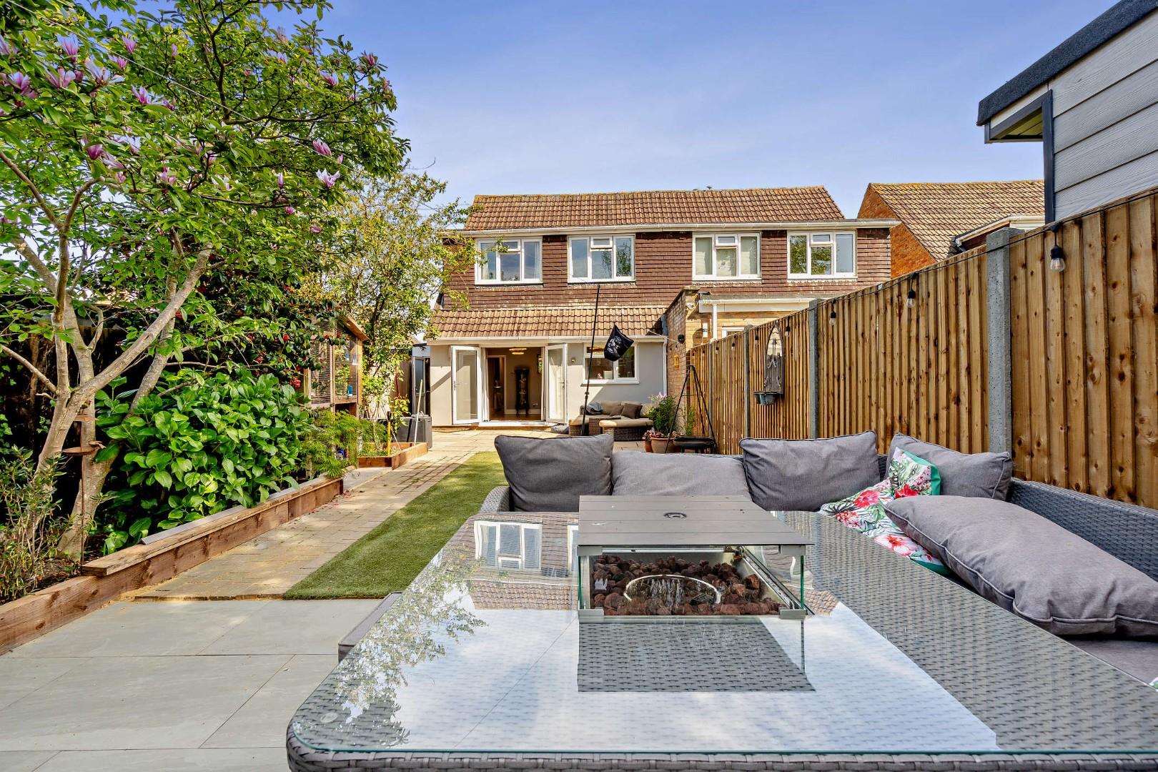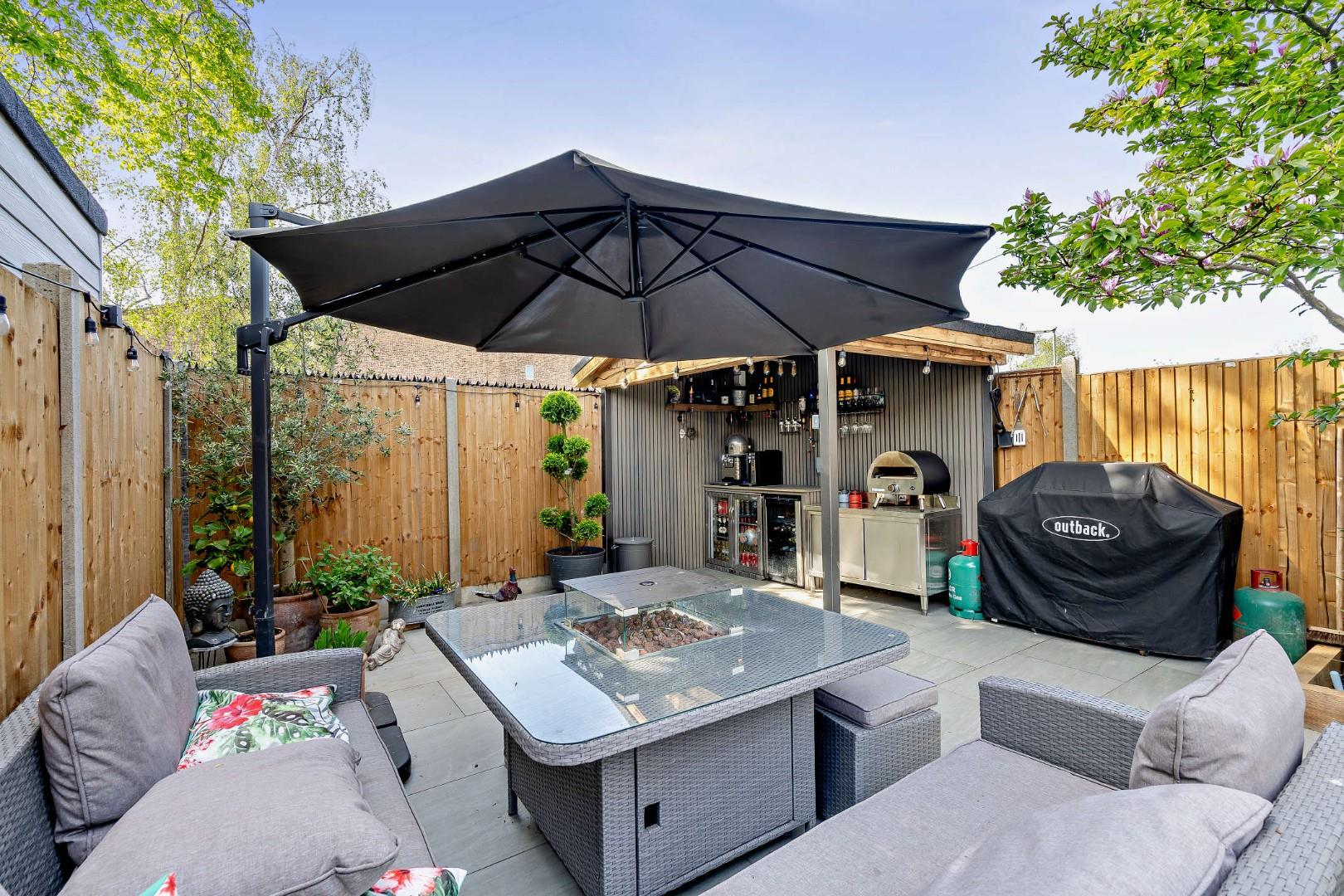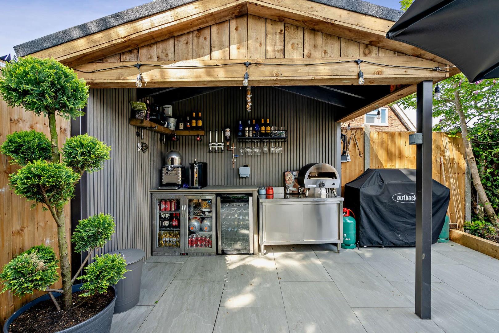 - Landscaped rear garden with patio and fitted outdoor bar, plus driveway with ample off-road parking