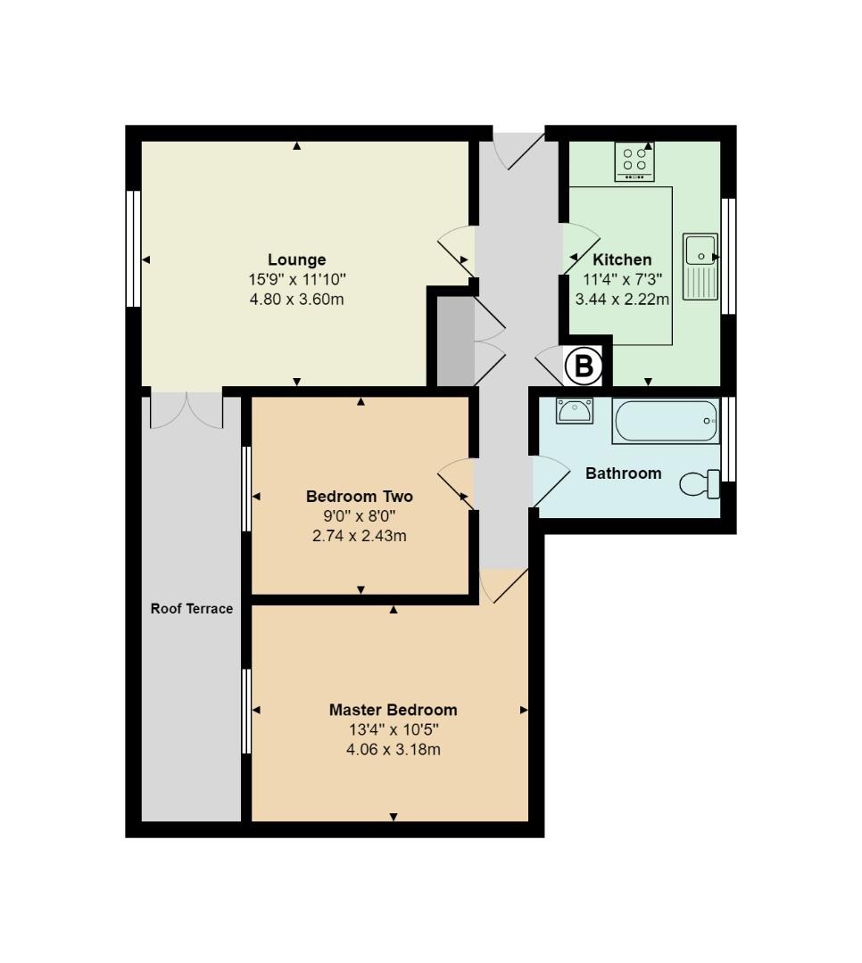 - Patio doors leading to a private roof terrace