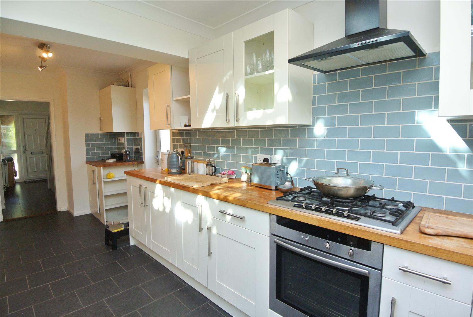 The ground floor features a bright and spacious living room leading through to a contemporary open-plan kitchen/dining room — an ideal space for family life and entertaining. French doors open directly to the garden, creating a seamless flow between indoor and outdoor living. A useful downstairs cloakroom completes the ground floor.