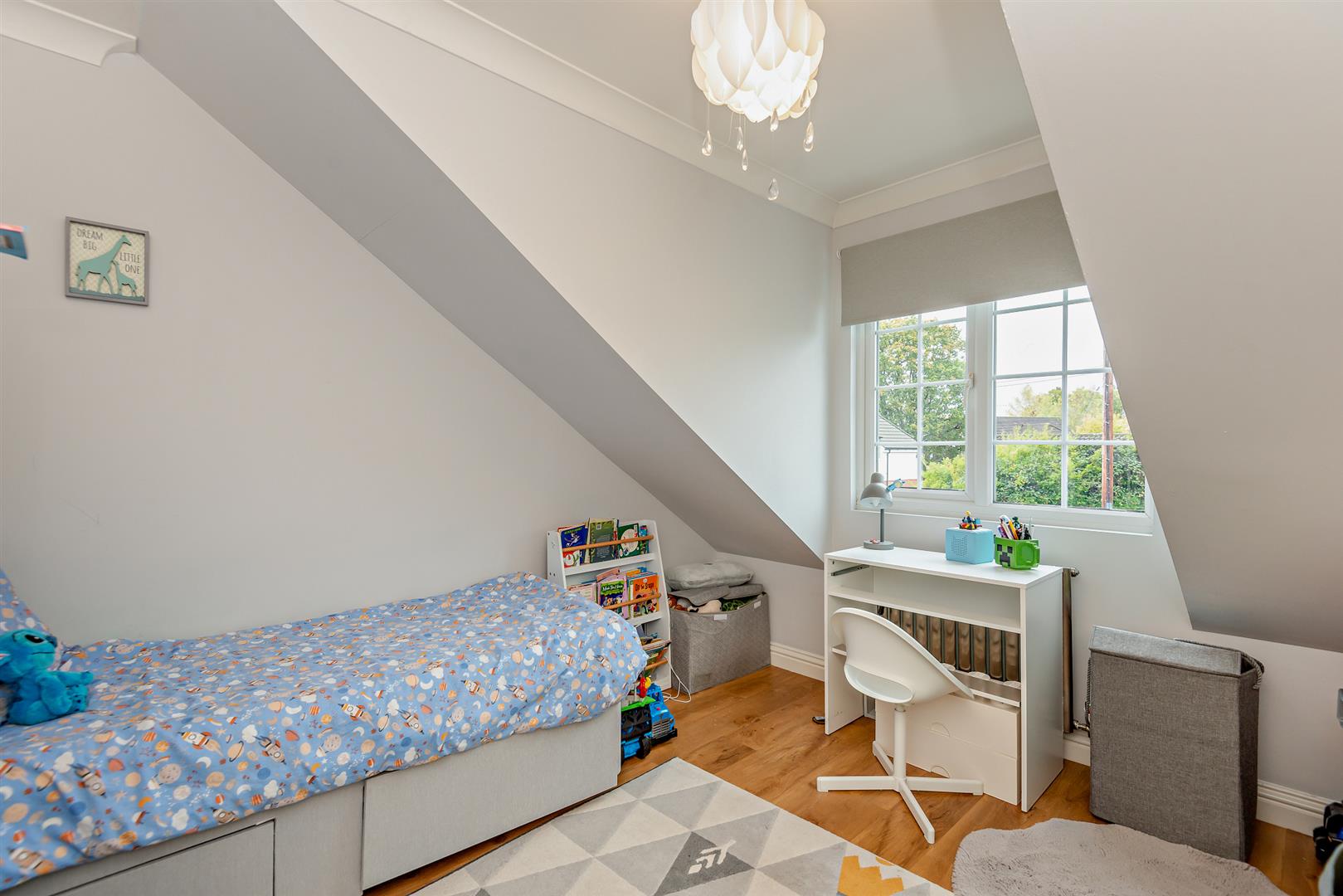 Upstairs, there are four well-proportioned bedrooms. The principal bedroom benefits from a stylish en suite shower room, while the remaining three bedrooms share a well-appointed family bathroom. Two of the bedrooms feature built-in wardrobes, and there are two useful storage cupboards on the landing.