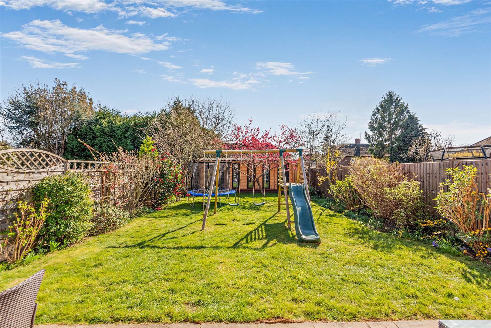 Externally, the south-facing rear garden is predominantly laid to lawn with a patio area ideal for outdoor dining. A particularly attractive and versatile outbuilding, currently used as a home office, adds further appeal.
