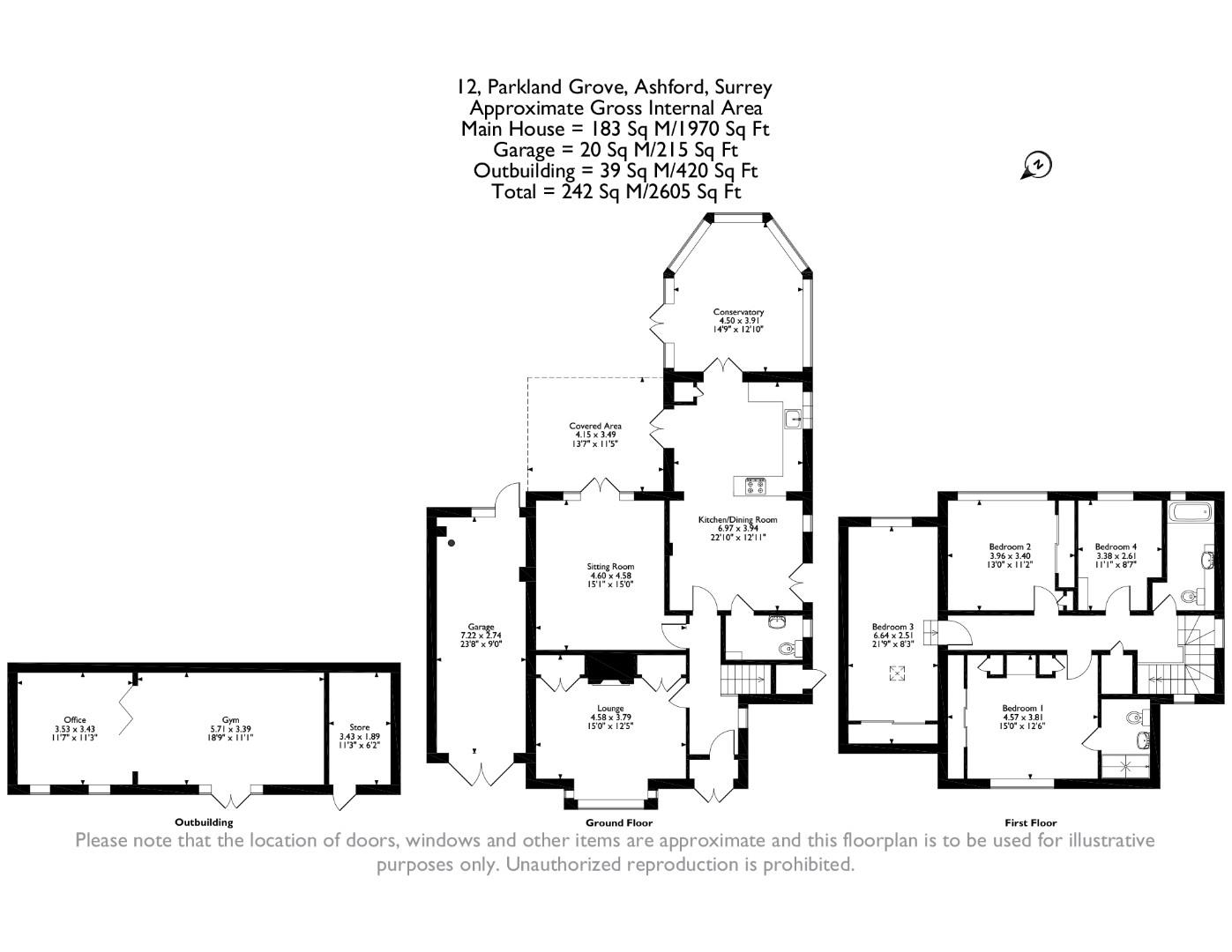 • Large rear garden with recently built brick office/gym