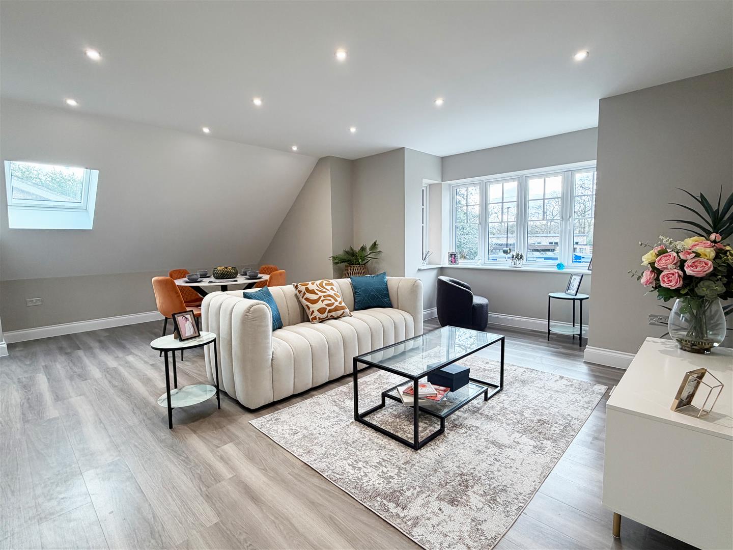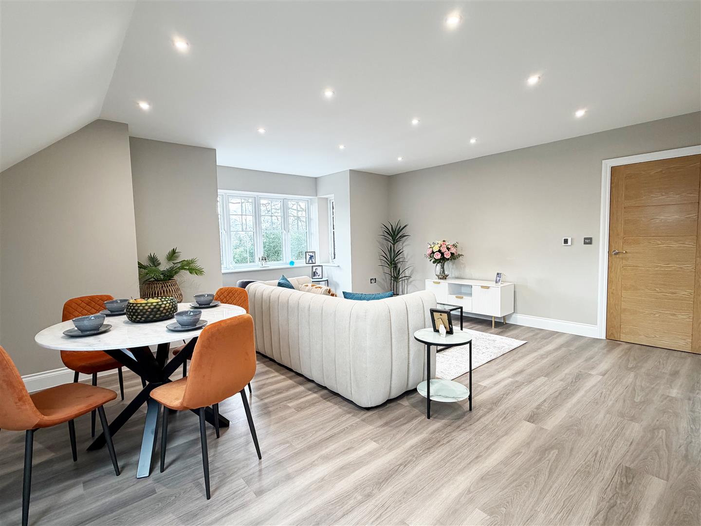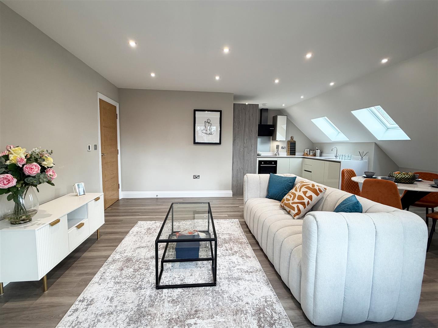 - Open-plan living room and kitchen with stylish Amtico flooring