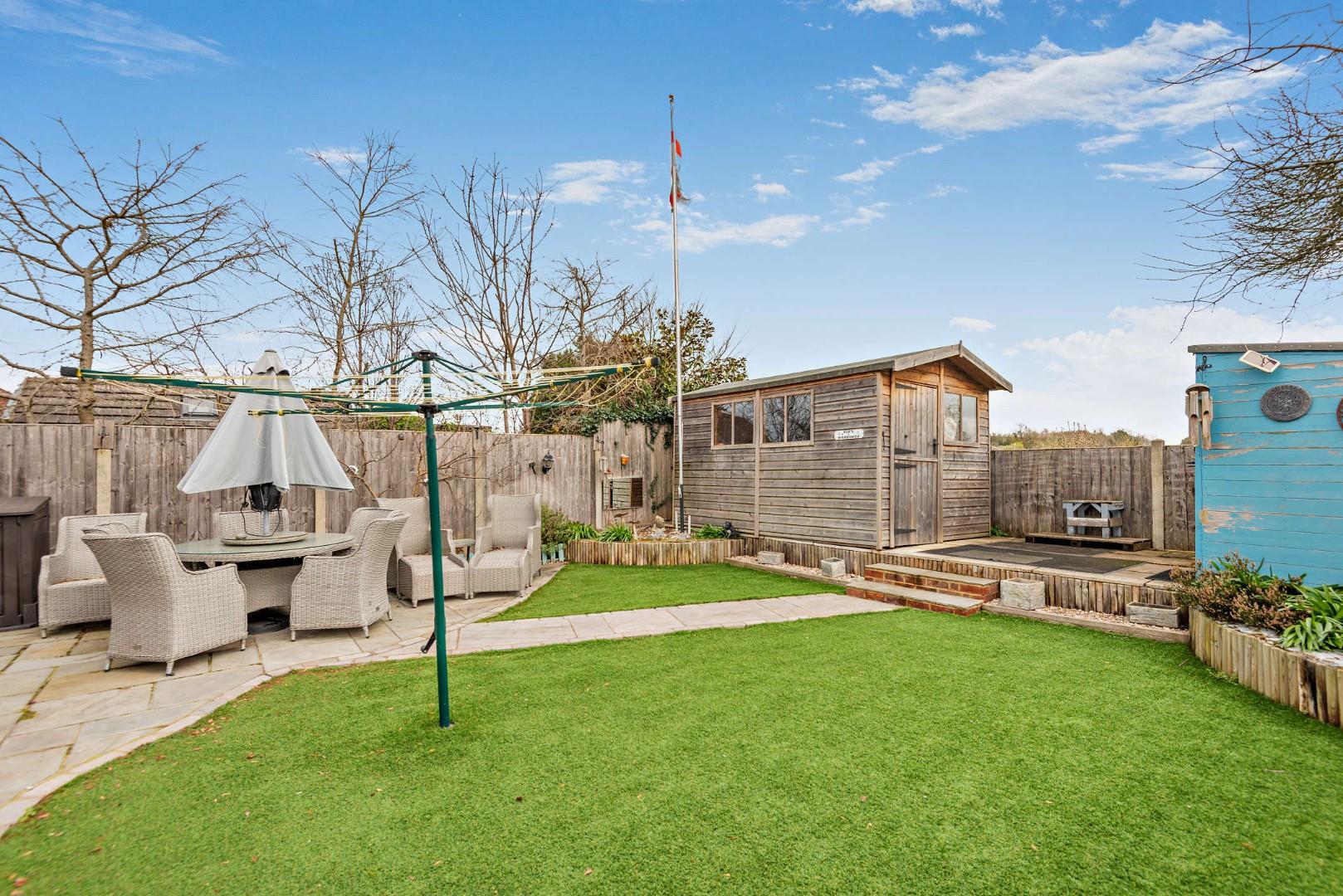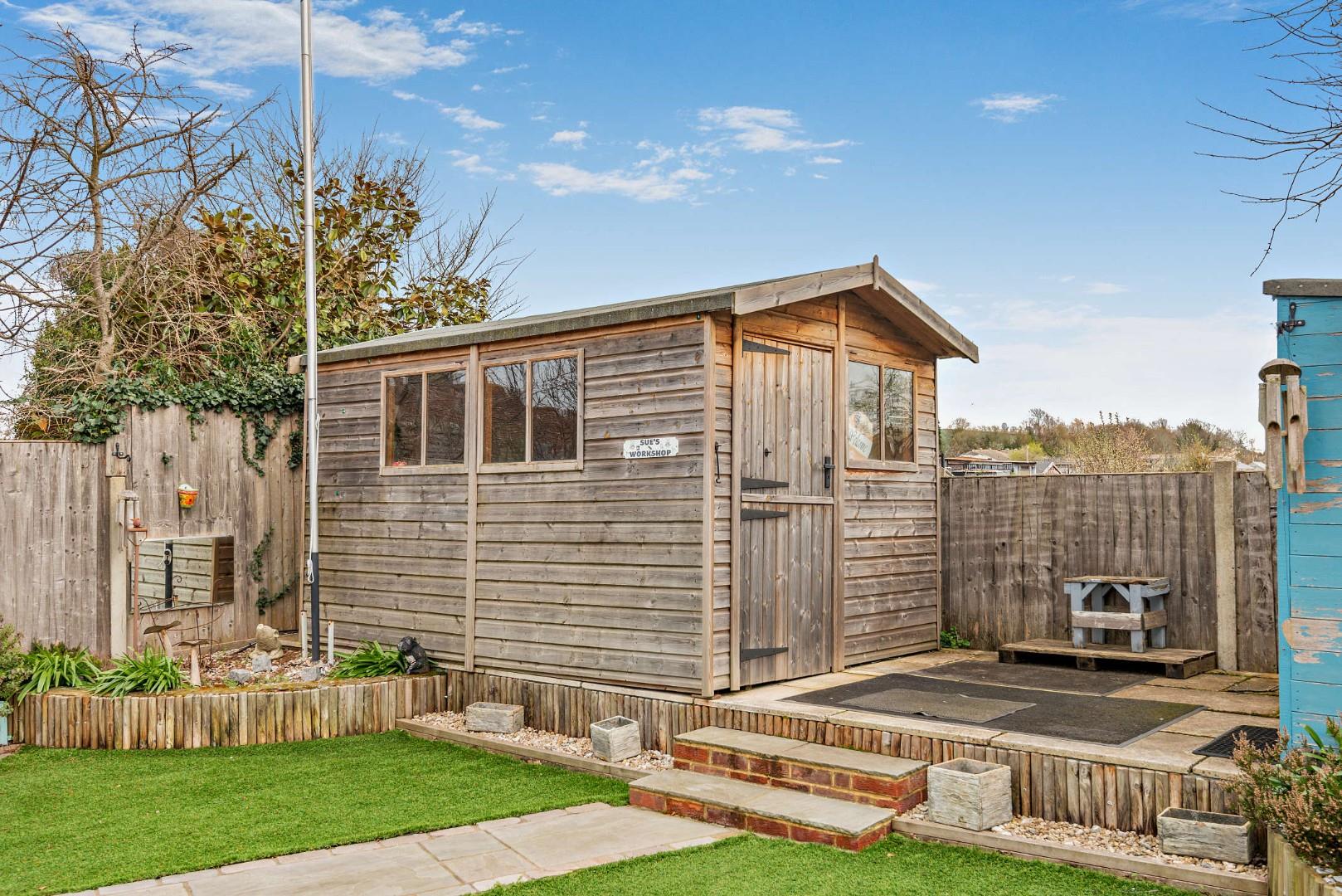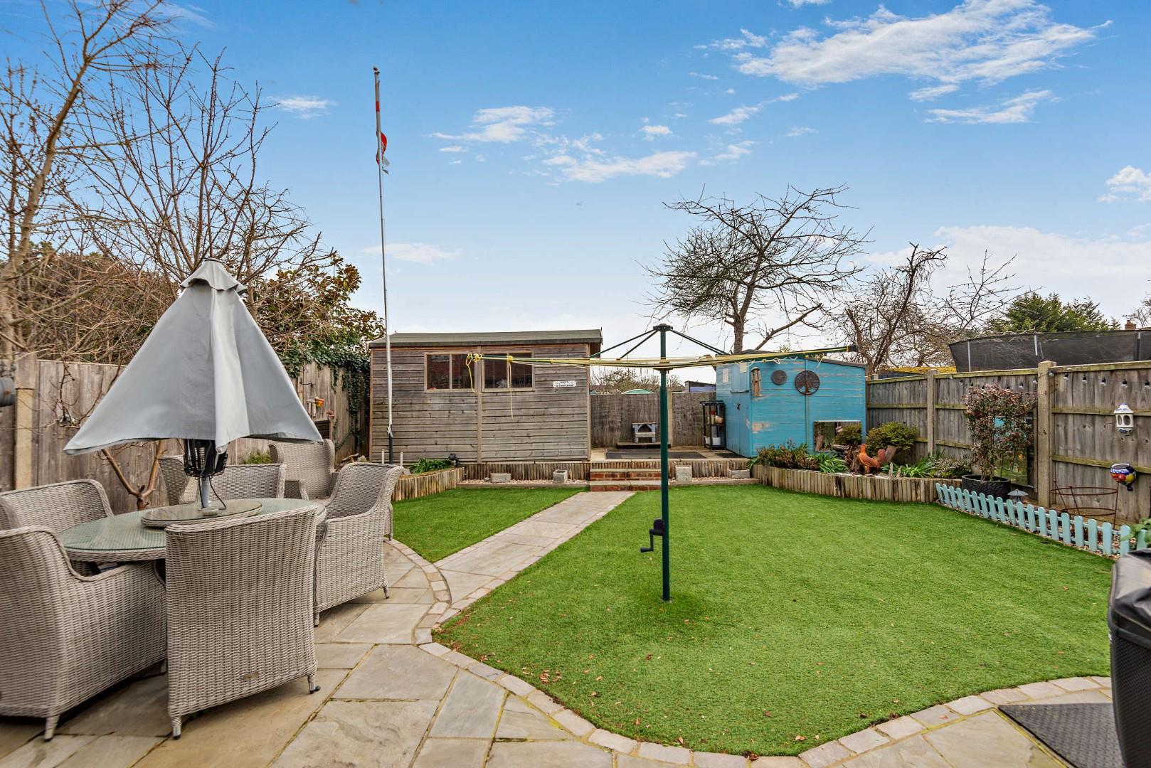 - Landscaped, low-maintenance rear garden backing onto allotments with workshop and two sheds