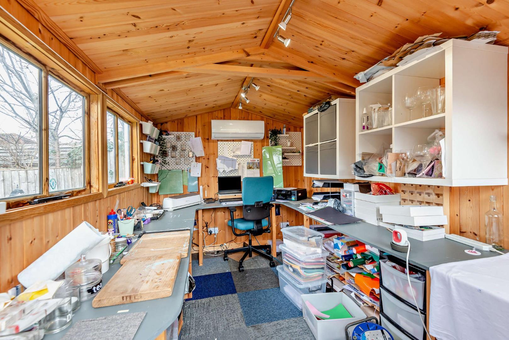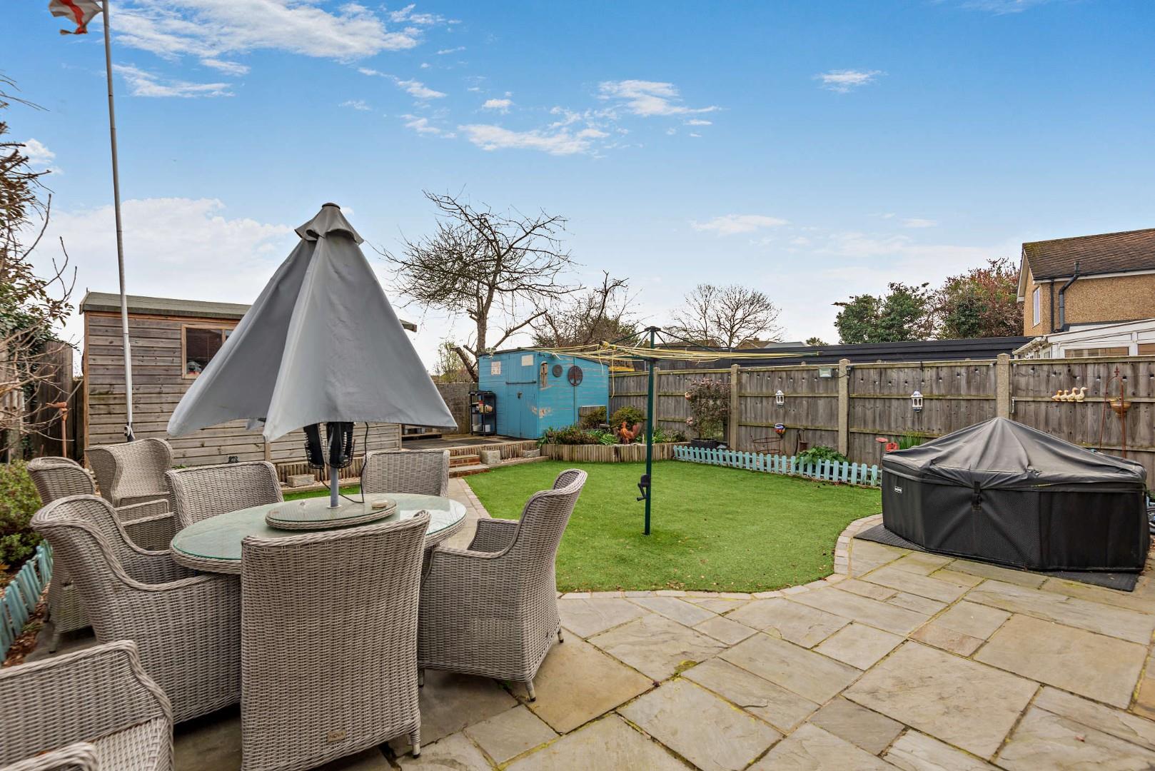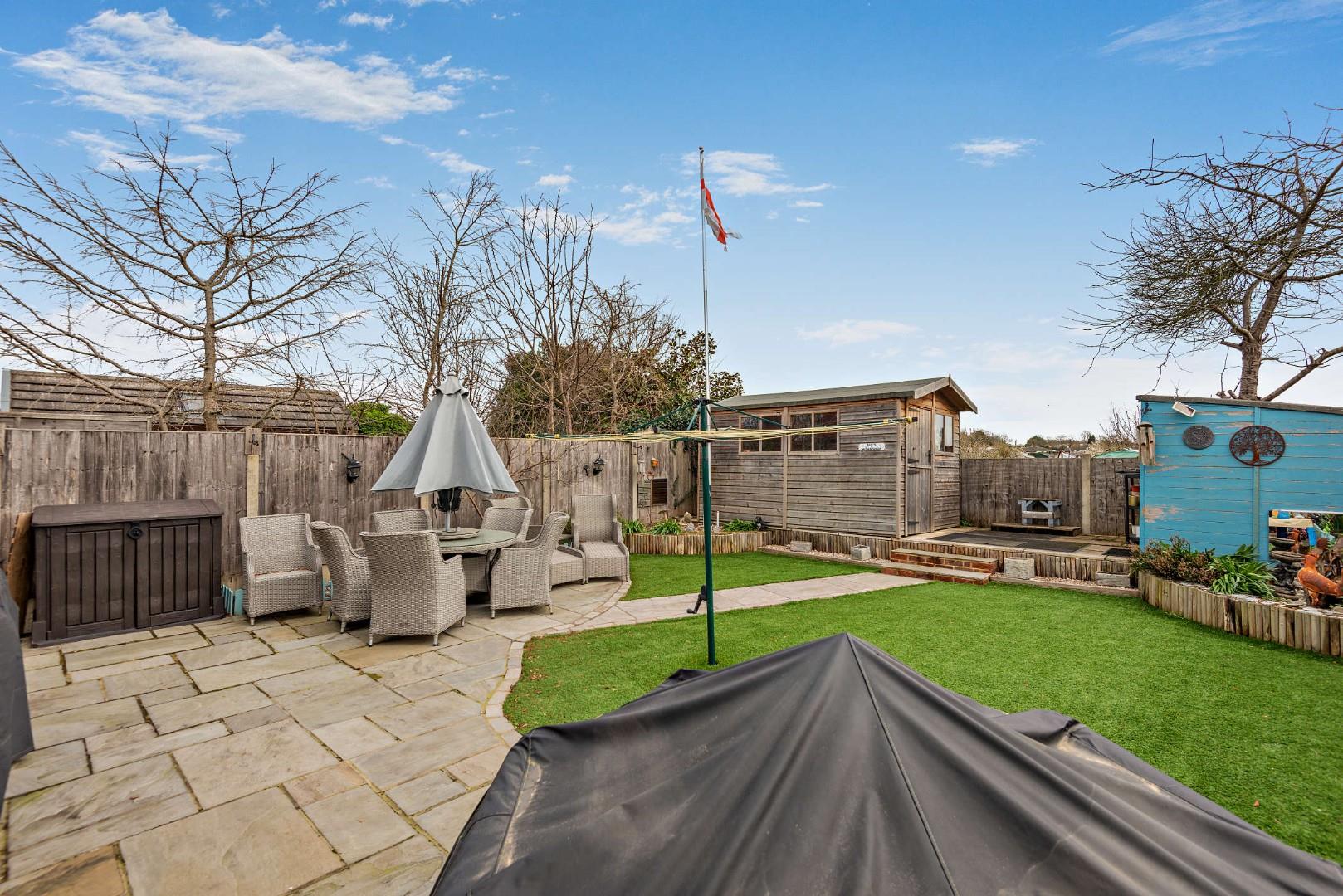 - Landscaped, low-maintenance rear garden backing onto allotments with workshop and two sheds