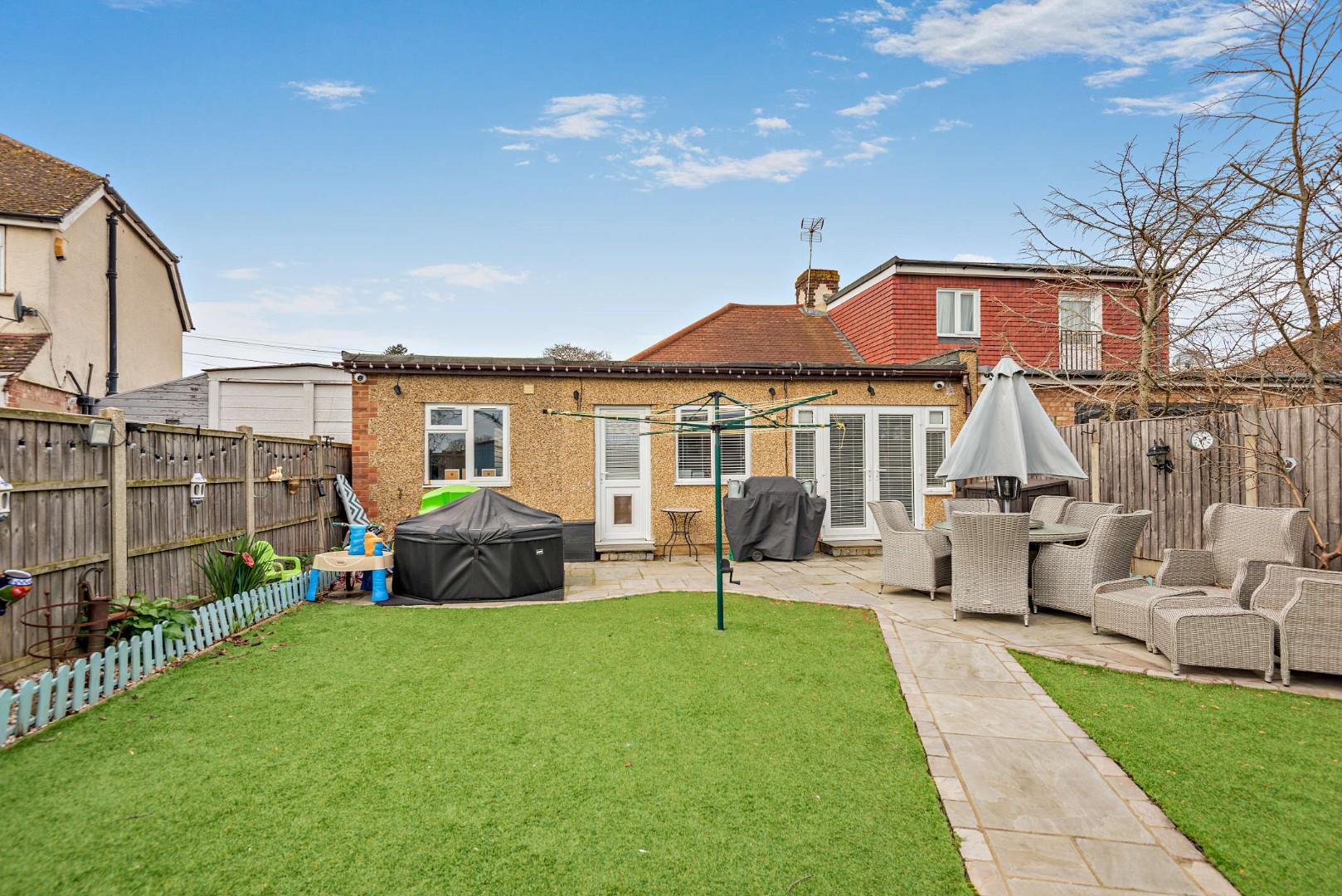 NO ONWARD CHAIN! This immaculately presented and extended two double bedroom semi-detached bungalow is situated in a highly sought-after cul-de-sac location, conveniently within walking distance of the town centre, mainline station, and just moments from Clockhouse Recreation Park. The property has been completely refurbished to an exceptional standard throughout, offering stylish and spacious accommodation ideally suited to modern living. A particular feature is the impressive 23ft lounge, providing a bright and comfortable living space, complemented by a stunning 20ft kitchen/diner fitted with high-specification units and quality appliances, perfect for both everyday use and entertaining.
