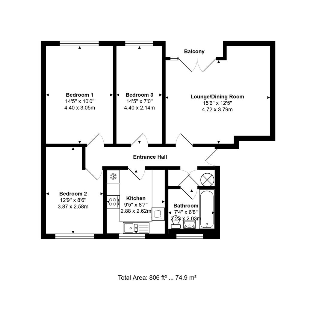 3 bedroom first floor apartment in this great position, centrally located within a fairly short walk of the main shops, Two Rivers and train station. The layout is superb, with all rooms approached from the central entrance hall. There is a good size lounge/diner with balcony, modern kitchen, bathroom with shower over bath and 2 double bedrooms and 1 large single bedroom. There is residents' parking available and a garage. There is no onward chain and would make a great FTB, downsize, or 'investment', with an expected rent in the region of £1,700pcm-£1,750pcm. Energy Rating C.